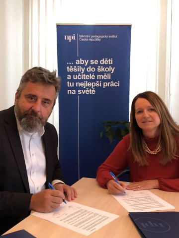 Memorandum podepsali ředitel NPI ČR Ivo Jupa a Petra Prošková, ředitelka Elixír do škol, z. ú.