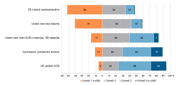Poznámka: Úroveň 1 a nižší je velmi nízká úroveň dovedností, která komplikuje plnohodnotnou účast na životě společnosti. Úroveň 4 a vyšší představuje velmi vysoké dovednosti – umožňuje zvládání velmi náročných komplexních úkonů při zpracování informací.
